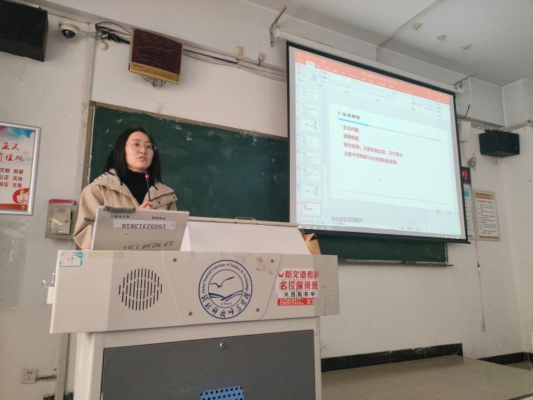 王仕琪老师、韩乾戟老师介绍了教育研习和实习的工作安排,需要提交的文档以及材料书写规则;党雅茹老师对实习员工提出几点要求:一是高度重视实习工作,端正学习态度,积极与指导教师交流,向优秀教师汲取教学经验;二是努力提高教学水平,服从实习公司安排,认真完成工作任务;三是重视人身、财产安全,切实保护自身利益。